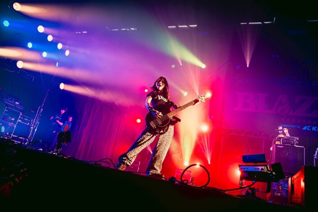「長崎でこんなに多くの人の前でやるのはバリ初めて、今日はほんまにエグイ! うちら堺で長崎と繋がってんねん、サビエル繋がり! 急遽受け入れてくれた皆さんもありがとうございます!ウチらの夢は死なへんぞ!SHANKの夢も死なへん!」と高らかに叫び、名刺代わりのアンセム「The Dream Is Not Dead」をドロップ。「長崎の拳を見せてくれ!」とあやぺたは煽り、無数の拳が突き上がる光景は壮観であった。ラストスパートは「Tonight,Tonigh,Tonight」、「FIST BUMP」と畳みかけ、終始熱量アゲアゲのパフォーマンスで駆け抜けていった。特に最後の曲はあやぺたとMEGのツイン・ヴォーカルによる掛け合いも相性抜群、Dizzy Sunfistの新たなグルーヴに面食らった人がたくさんいたに違いない。今後の成長ぶりが末恐ろしくなる貫禄のステージだった。