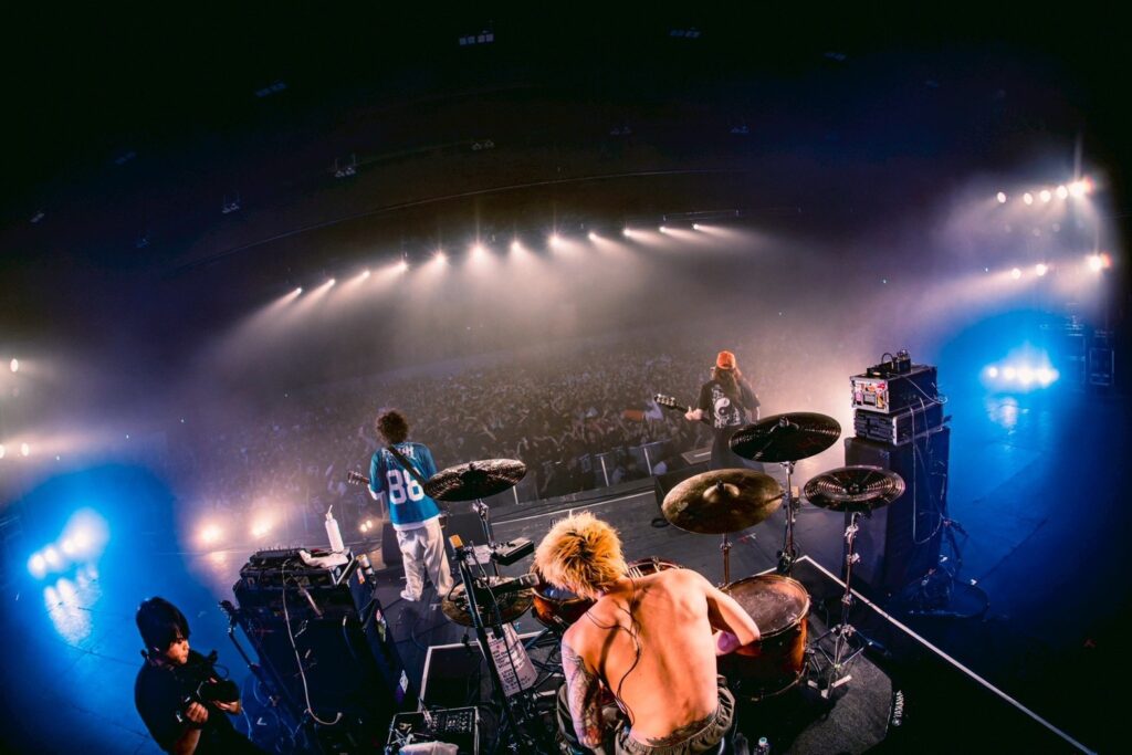その後もナオキ(G)のコーラスが曲をより豊かなモノとした「Get Started Together」、サークルピットがいくつも出現した「Gentleman Kill」からダトの猛々しいシャウトも心を揺さぶった「”TH”」と続けていくが、ただ強力なナンバーを連打するだけじゃないのが彼らの遊び心であり奥深さ。人を食ったようにちょっとだけ間を空けたり、ダトがおどけながらコールを煽ったりしつつ、どうなるんだろうと想像を巡らすぐらいのタイミングでバチンと曲へ入っていく。シャレがわかってて、いつでもどこでも臨戦態勢な彼らだからこそ成せる技に違いない。