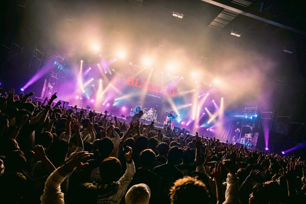 「今日出ているバンドの中でSHANKとの思い出が一番少ないと思う。ちゃんと繋がったのはマジ最近。SHANKのおかげでBLAZE UP初登場! 一度キャンセルになったバンドをまた呼んでくれた。今のウチらの歌・・・」と前置きした後、「オーマイラブ」へ。親しみやすいメロディと共に「父さん母さん ありがとね」の飾り気のない歌詞がストレートに響いた。