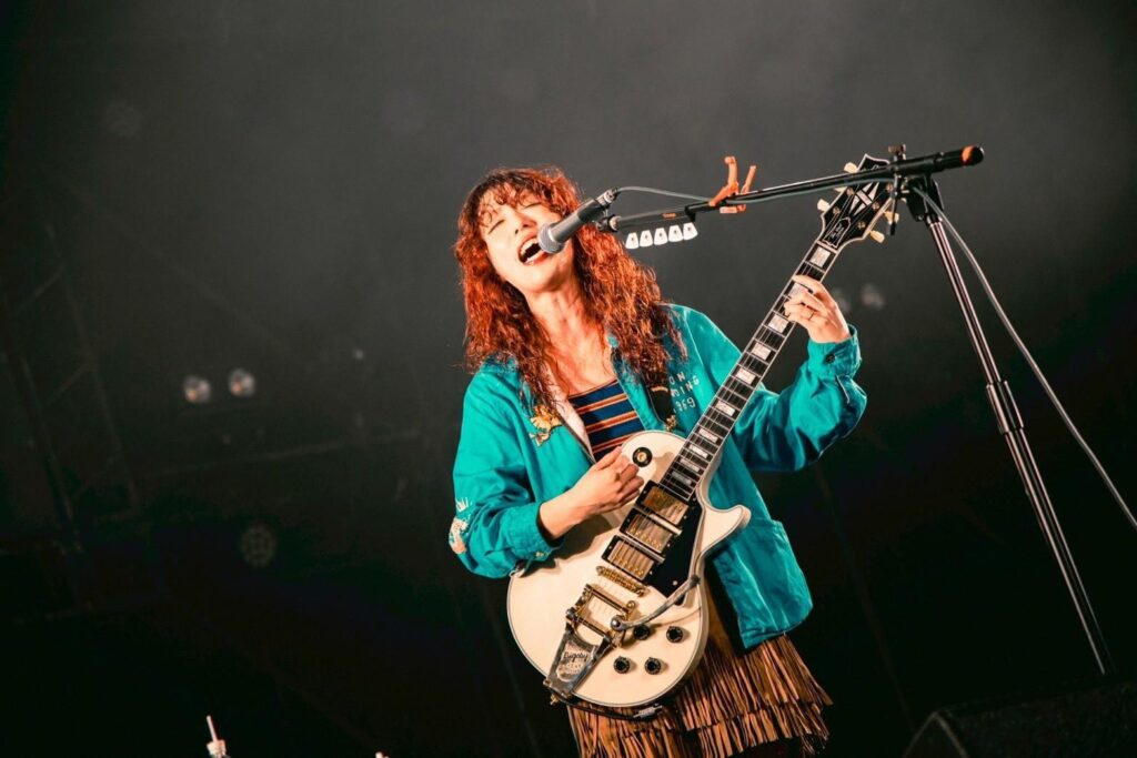 アッパーな「ティーンエイジサンセット」、スピーディーな「僕らの時代」とライヴキッズを興奮させるエネルギッシュな楽曲を畳みかけ、メンバー3人が一児の母とは思えない爆発ぶりを見せつける彼女たち。「SHANKを聴いていると、まともな大人にならないよ」と前フリを入れると、次は「番狂せ」をプレイ。曲の中に「しょうもない大人になりたいわ」の歌詞が何度も出てくるけれど、周りの目なんて気にせず、自分のやりたいように生きろ!と背中を押される気分になったのは筆者だけではないはず。曲の終わりに「どうしようもない大人で行こうぜ!」と呼びかける様が印象的であった。