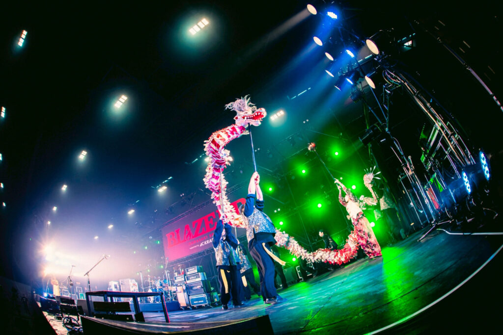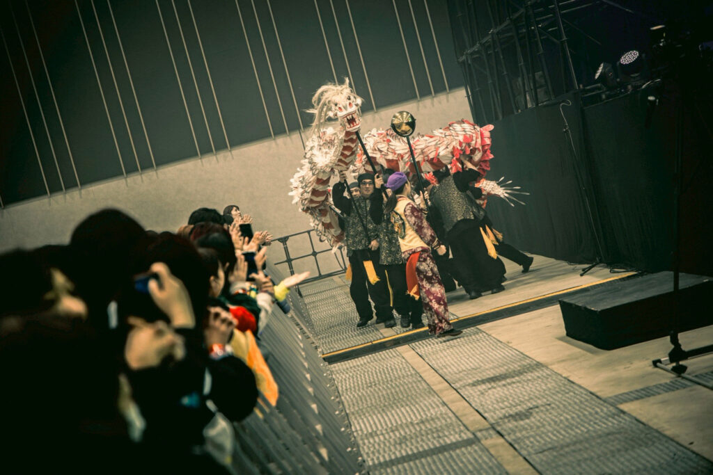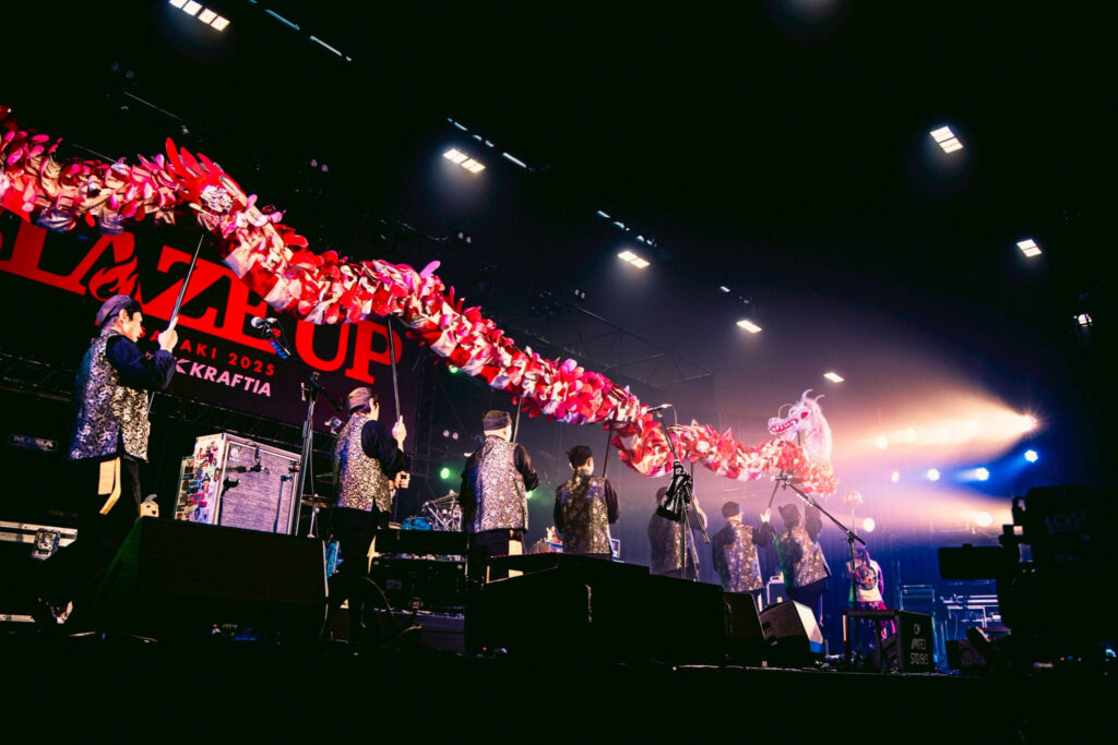 九州が誇るメロディック・パンクの雄、SHANKが地元長崎で主催するフェス『BLAZE UP NAGASAKI 2025』。今年も12月6、7日の2日間に渡り、出島メッセ長崎で開催。パンク、ラウドを軸にライヴ猛者たちがずらりと顔を揃え、一気に寒くなってきた気候をブッ飛ばす熱演が繰り広げられることは間違いない。その先陣を切る形で、初日のオープニング・アクトを飾ったのは長崎龍踊り(じゃおどり)だ。もともと中国の雨乞いの儀式を由来とする龍踊りは、長崎諏訪神社のくんちに奉納される郷土芸能として知られている。