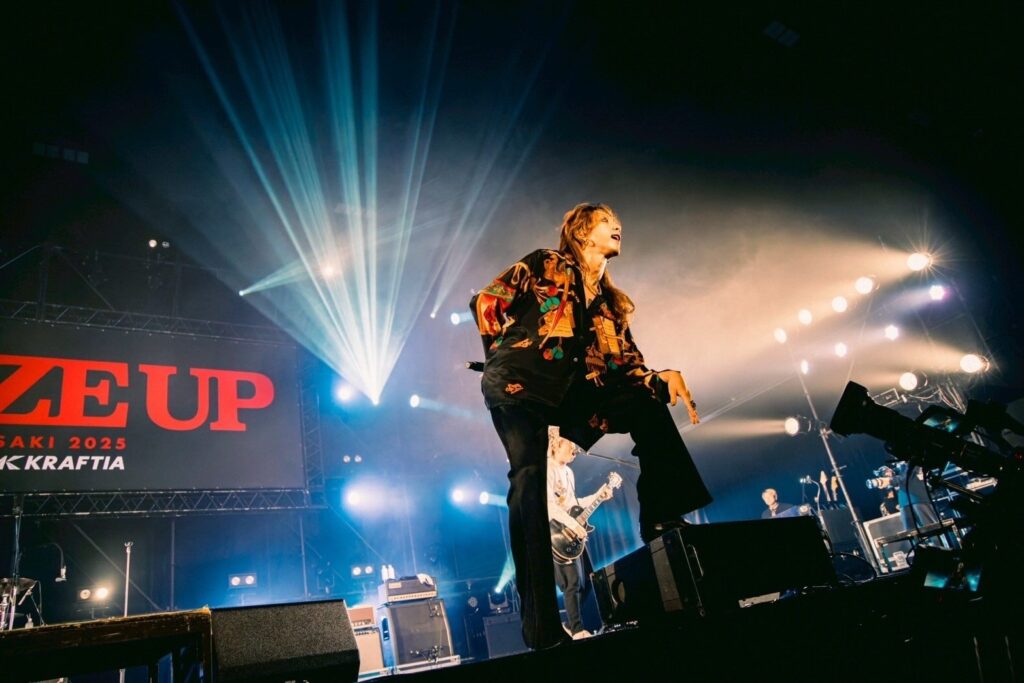 ただ、まだまだアクセルは踏み込めると、渋谷が「ライヴハウス始めます」と言い放ってから、バンド全体でボルテージをグッと上げて「東京流星群」へ。冒頭で《僕の宝だ》と《長崎の宝だ》と歌い上げたように、SHANKへのリスペクトを表しながら、上杉と藤原はたくましいリズムを紡ぎ、柳沢も空間を彩るフレーズを奏でていく。もちろん、ど真ん中には揺るぎない渋谷の歌声が鎮座。受け止める自信にもみなぎっているのであろう、「かかってこい!」と叫ぶ渋谷の姿も頼もしく、もはや無敵感しかないと言っていい。彼らにかかればドームもライヴハウスになるんだろうな、という確信ももたらしてくれた。